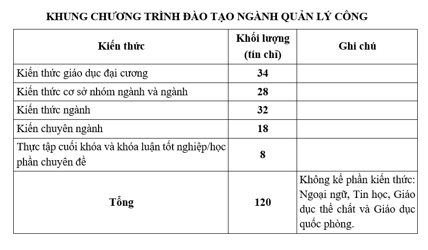 không bao gồm phần kiến thức: ngoại ngữ, giáo dục thể chất và giáo dục quốc phòng