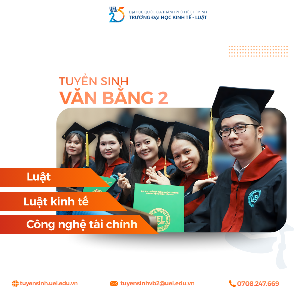 Trường Đại học Kinh tế – Luật thông báo tuyển sinh Đại học văn bằng hai, hình thức đào tạo chính quy năm 2025 🔖Ngành Công nghệ tài chính 🔖Ngành Luật kinh tế (chuyên ngành Luật kinh doanh) 📍 học theo tín chỉ 📍 bằng cấp uy tín – mở rộng cơ hội nghề nghiệp…